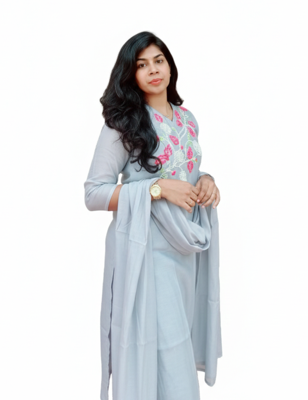 Mul Chanderi is usually seen only in premium collections because of its lightweight weave, subtle sheen, and elegant fall. Getting a full 3-piece Mul Chanderi suit set at a budget price is not common, which makes this piece truly worth picking before it goes.