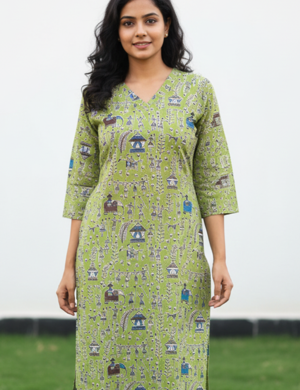 Celebrate traditional artistry with our Parrot Green Warli Print Cotton Kurti, thoughtfully designed for women who appreciate cultural motifs blended with modern comfort. Crafted from premium-quality cotton, this kurti is soft, breathable, and gentle on the skin, making it ideal for all-day wear in Indian weather.