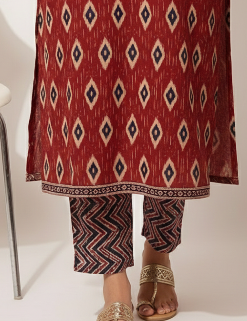 Pair it with oxidised silver jewellery, black juttis or kolhapuris, and minimal makeup for a striking ethnic look.